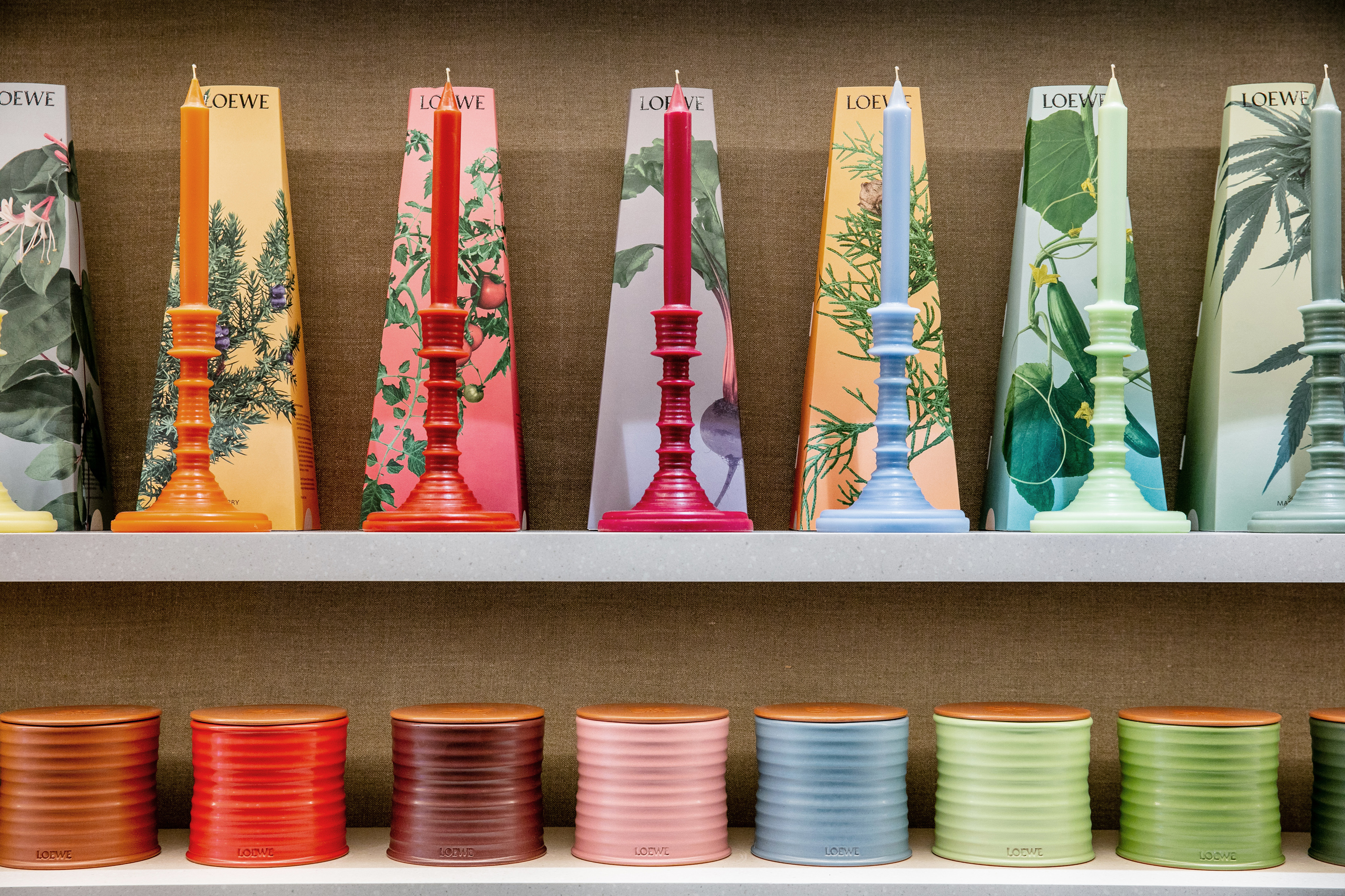 LOEWE Perfumesの各店舗のコンセプトとなっている植物資料館をイメージしてデザインされた11平方メートルのスペースに、LOEWE Botanical Rainbow、Homes Scents、Paula's Ibizaコレクションが並んでいます。これと同じコンセプトに基づき、同店はそれぞれの香りを、嗅ぐたびに違う体験を提供するユニークな要素として提示します。